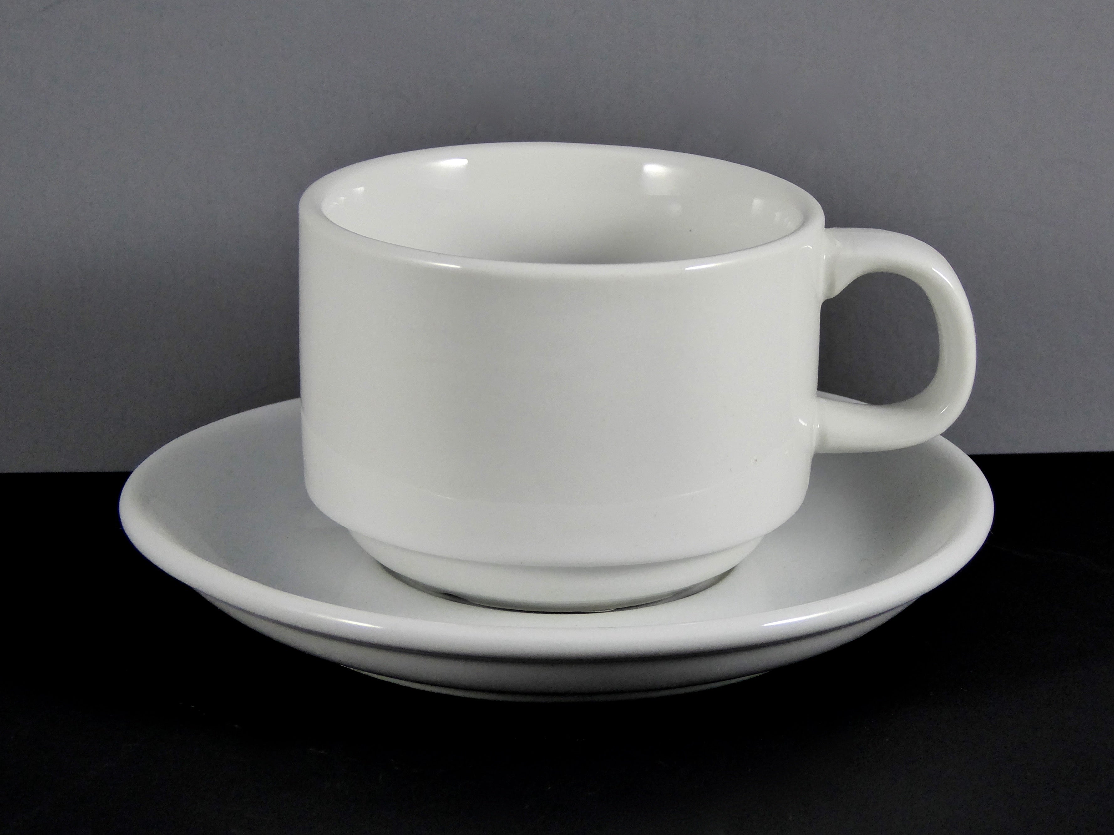 #10514 CUP & SAUCER (7 OZ.) STACKABLE – White Glazed Ceramic for Hot Beverages, Ideal for Café, Home, or Fine – Dining