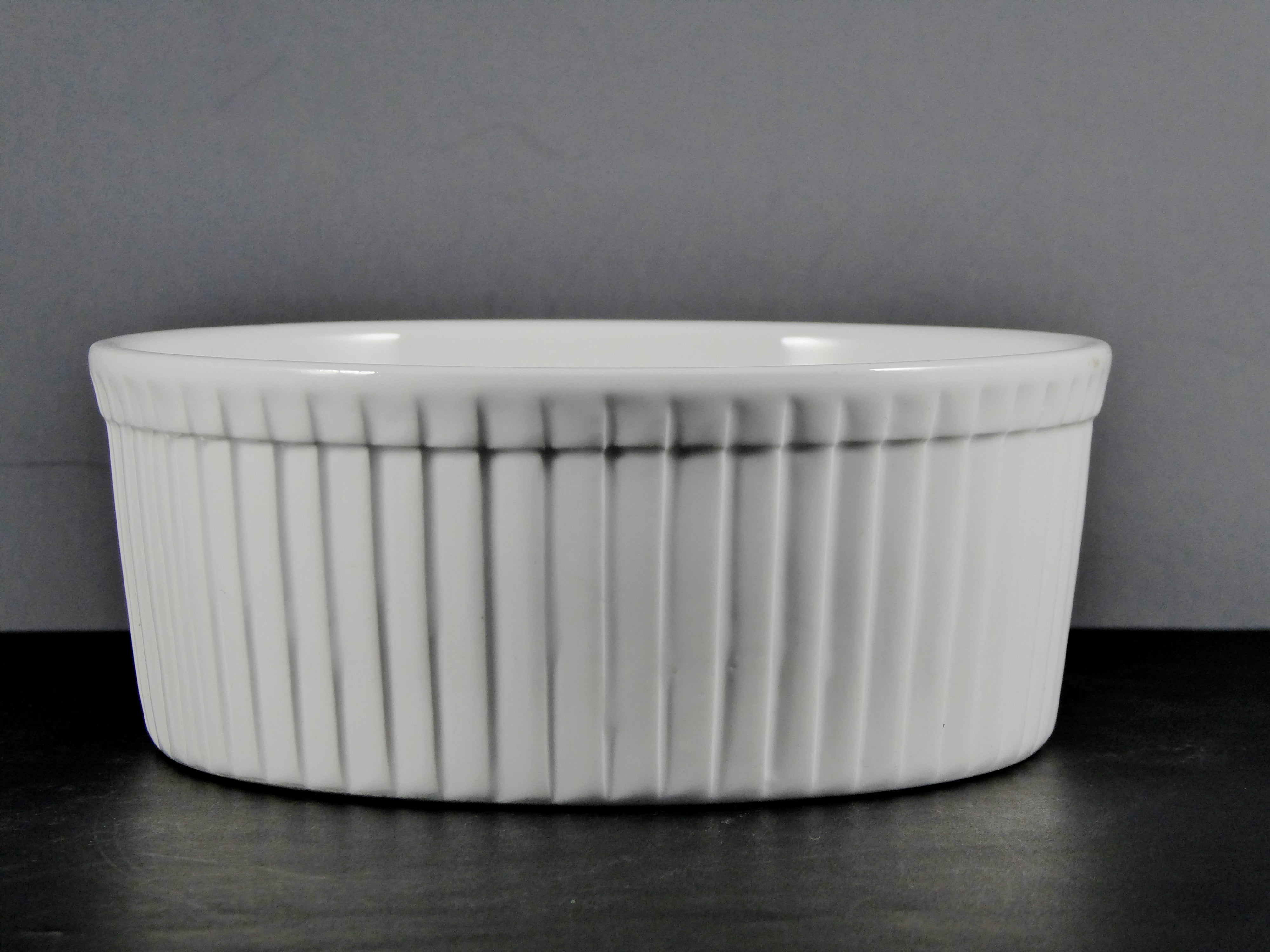 #12022 – 2 RAMEKIN 6.5″ X 3″ DEEP (40 OZ.) – Ceramic, White, Ribbed, Oven – Safe for Baking & Serving