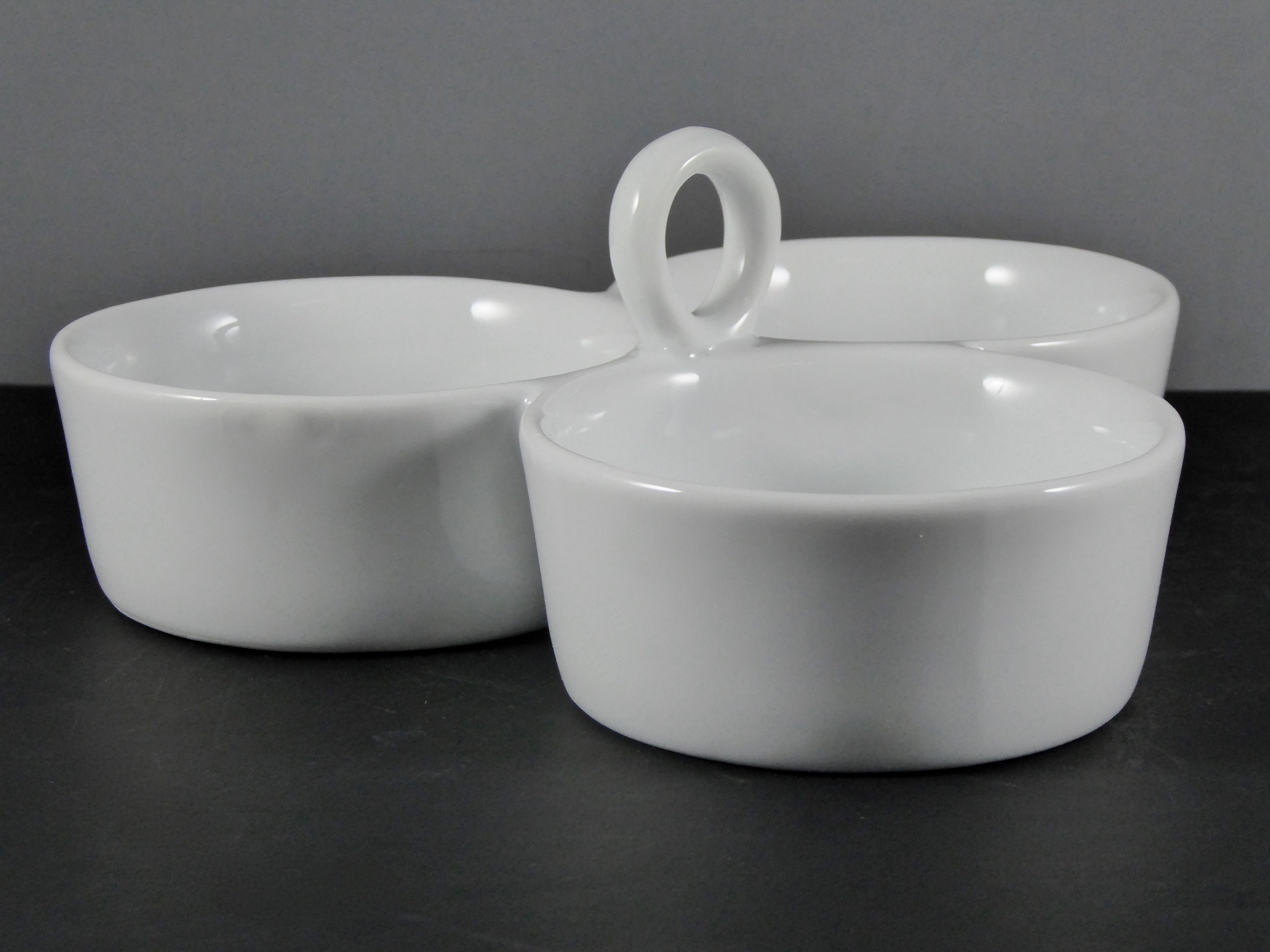 #13149 DISH 7.5″ TRIANGLE 3 SECTION (4 OZ.) – White Porcelain Multi – Compartment Serving Dish for Small Portions