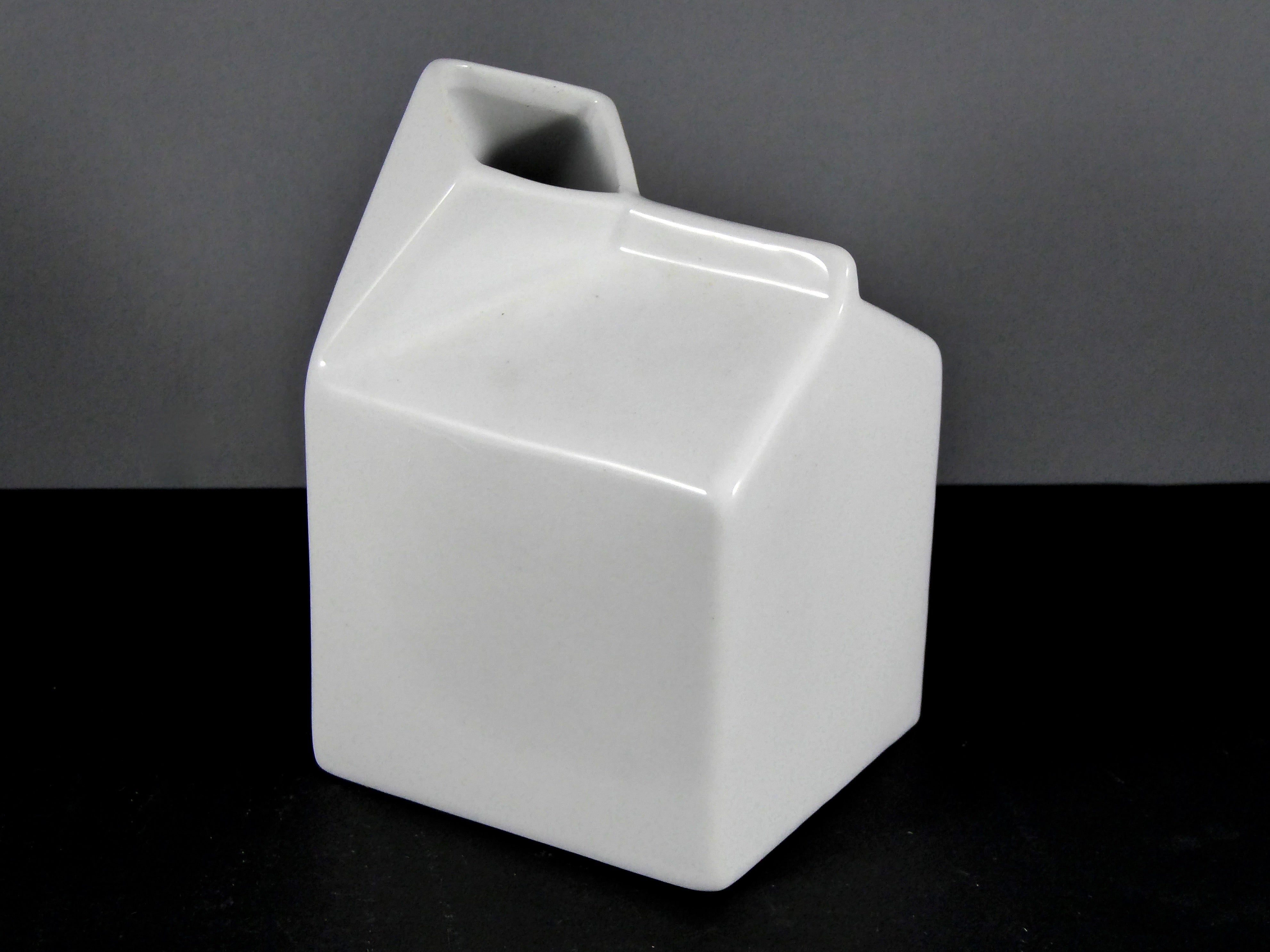 #6142 MILK CARTON (12 OZ.) – Modern Ceramic Decorative Vase or Sculptural Accent, White, Small – to – Medium Tabletop Item