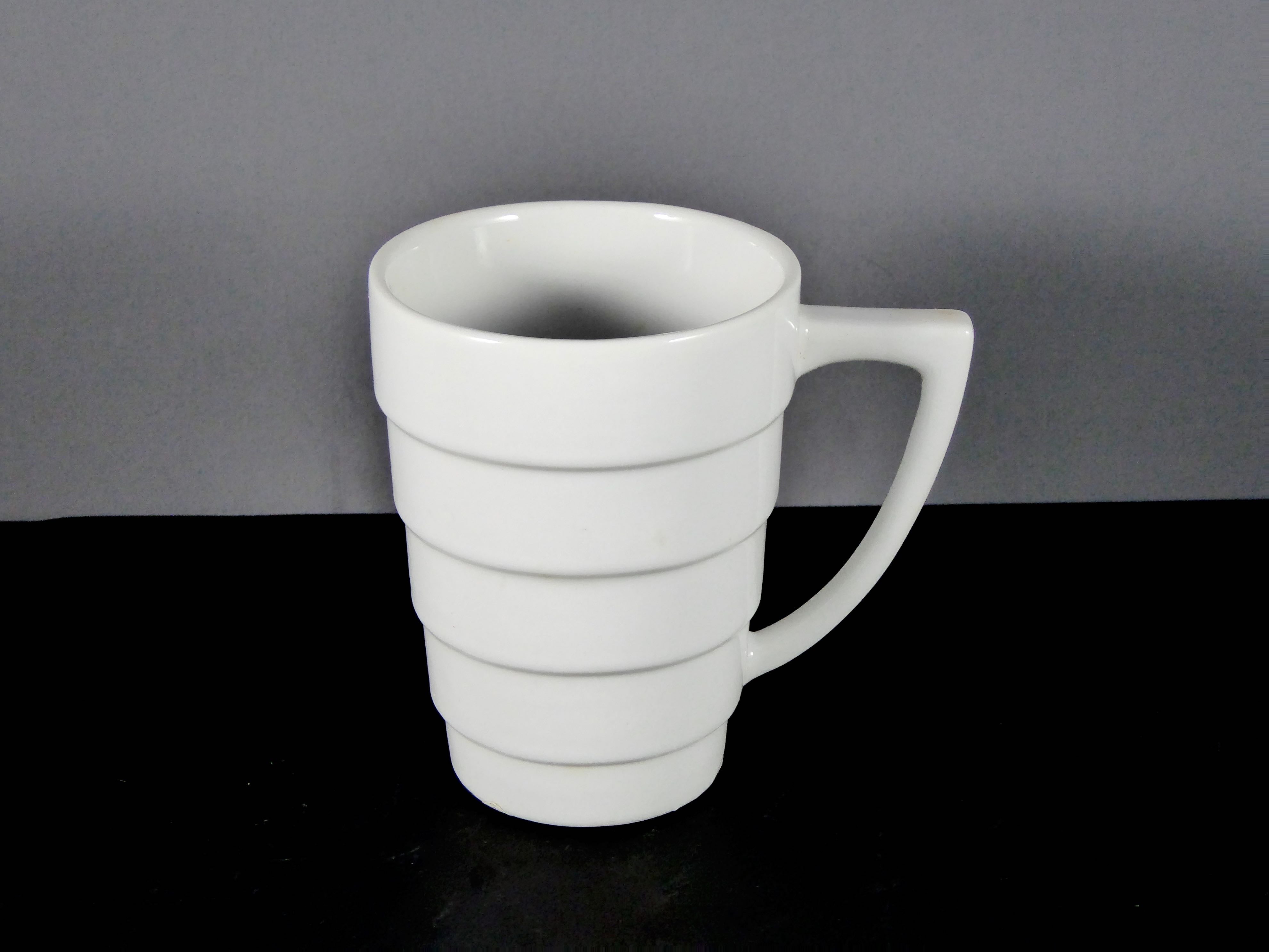 #6016 MUG 8 OZ. – White Ceramic Porcelain Mug with Ridged Design, 12 – 16 oz Capacity, Ideal for Daily Beverage Use