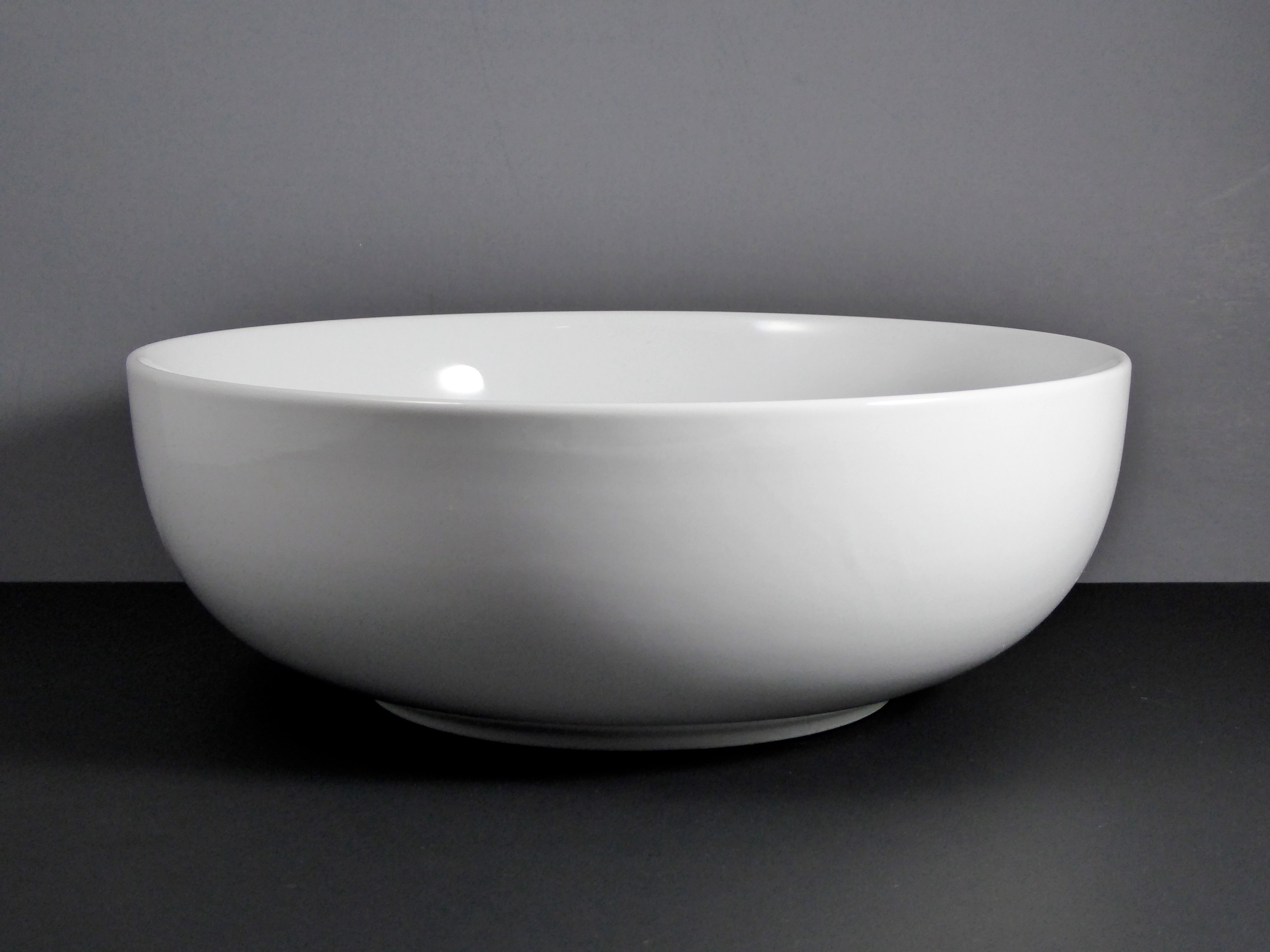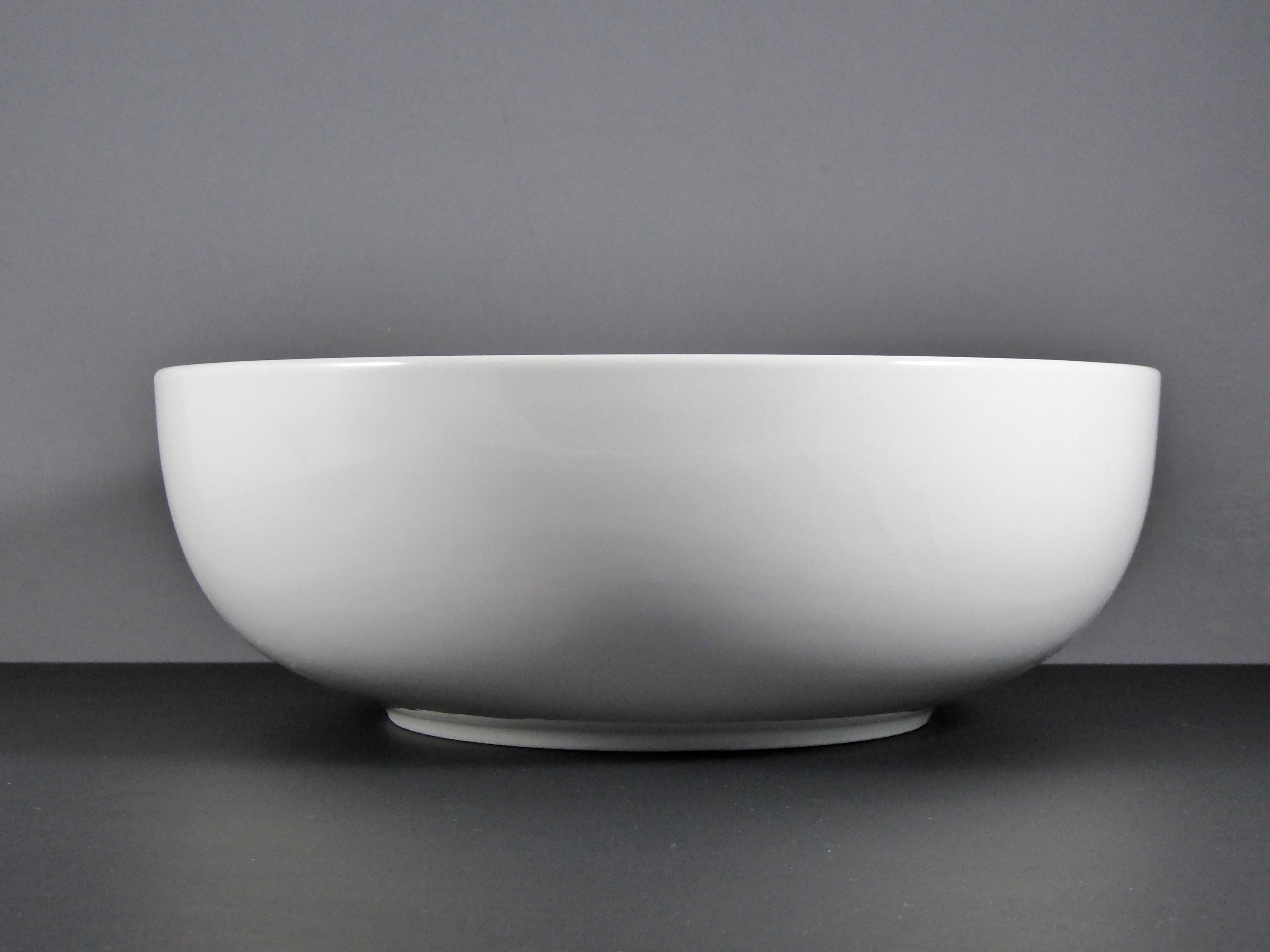 Made from high – quality porcelain or ceramic, this bowl features a solid, bright white color with a sleek, minimalist design. The glossy finish on both the interior and exterior not only adds to its aesthetic appeal but also ensures easy cleaning. The smooth, curved exterior and seamless, reflective interior give it a professional and sophisticated look.