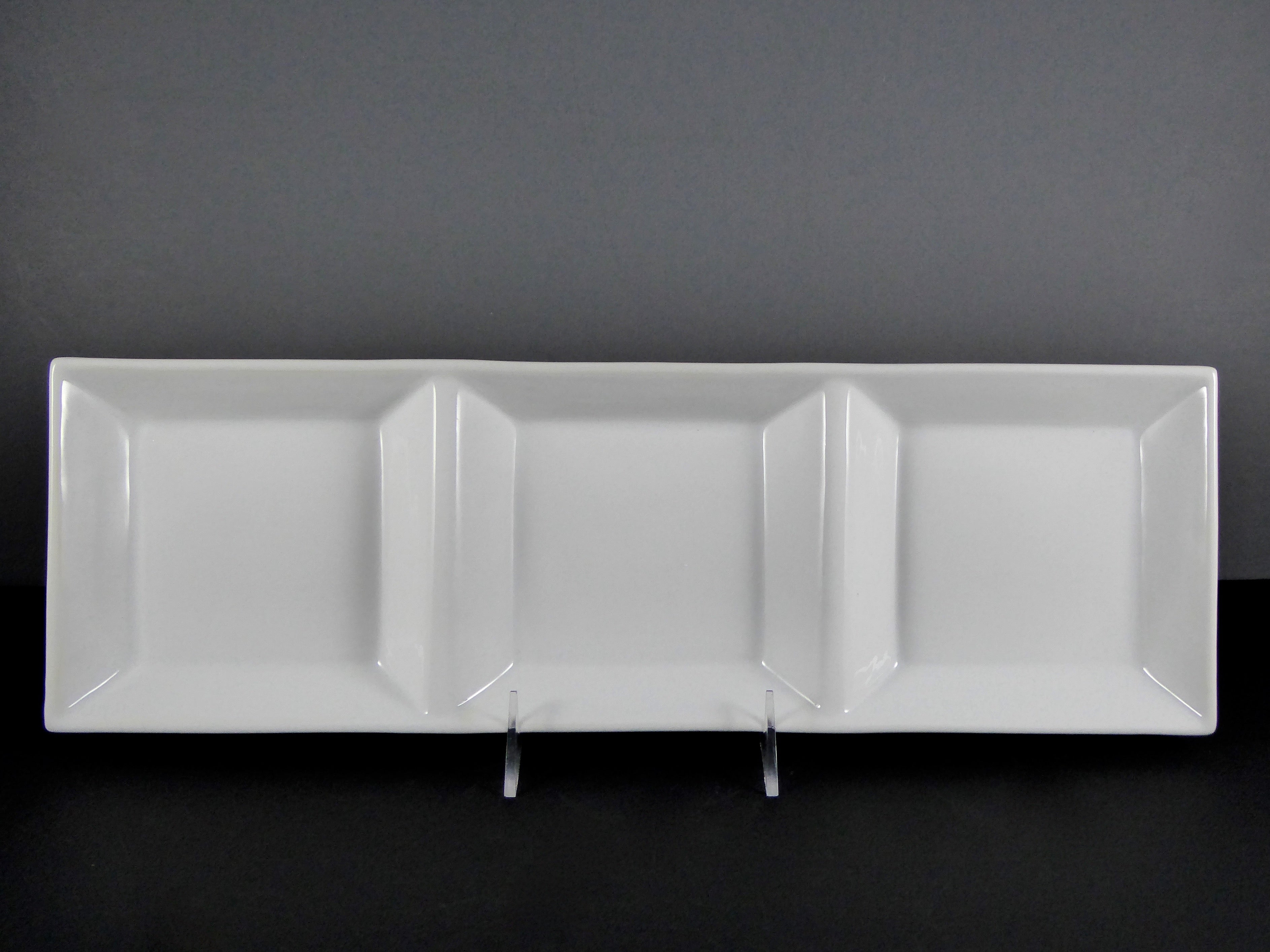 Introducing the #14072 DISH 17″ X 5.5″ RECTANGLE 3 SECTION (8 OZ.), a multi – compartment rectangular serving platter that combines functionality with elegant design. This platter is a must – have for both casual and formal dining settings.