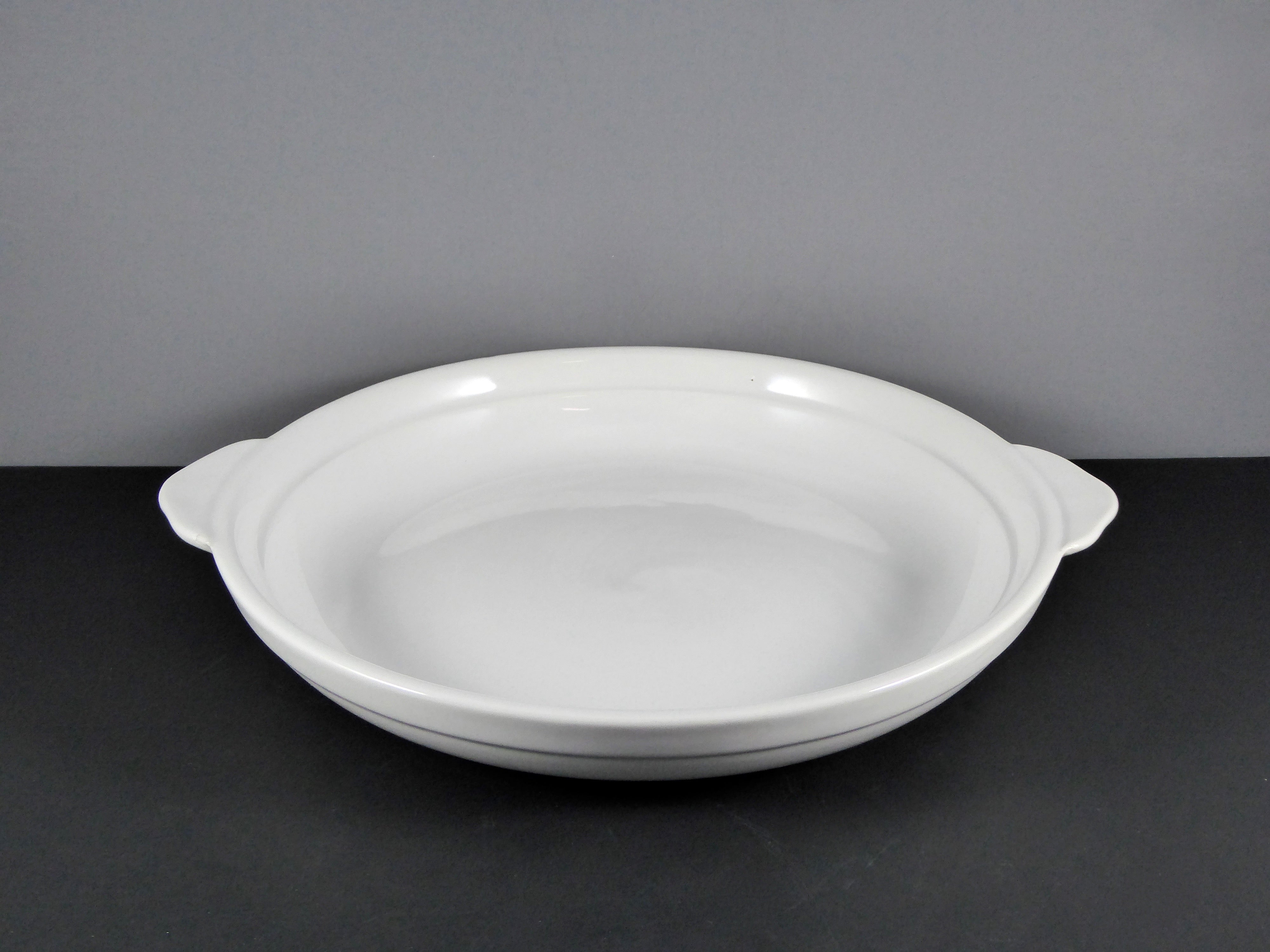 | Product Type | Shallow, round ceramic dish with side handles (serving platter, shallow casserole, or baking dish) |