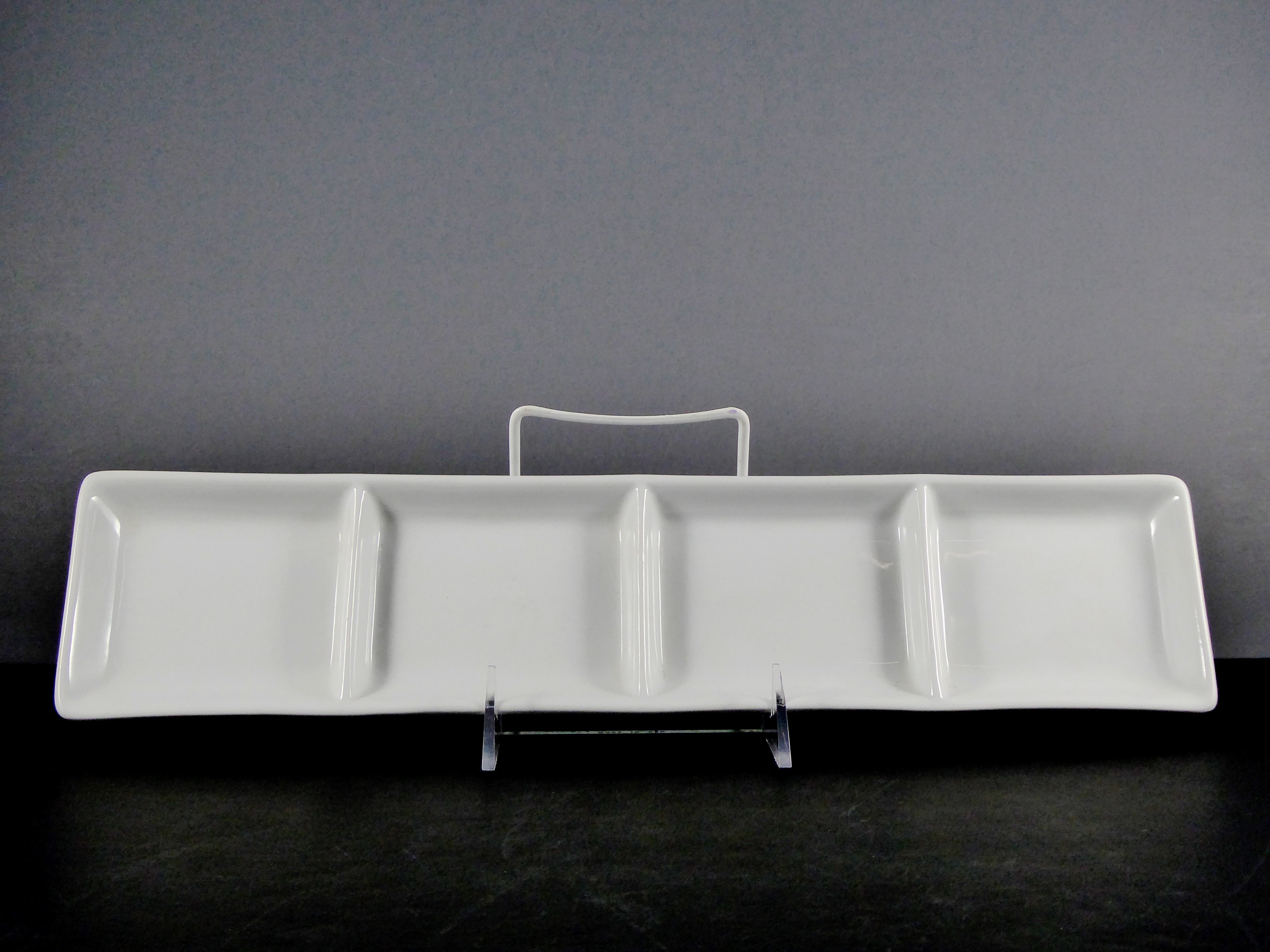 Introducing the #5747 DISH 14″ X 3.25″ RECTANGLE 4 SECTION (3 OZ.), a high – quality, versatile multi – compartment rectangular serving platter. This divided serving tray is a must – have for any event or daily home use.